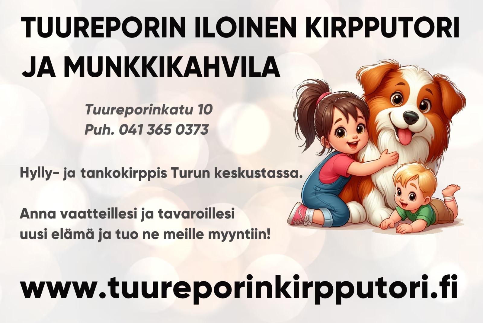 KUN HALUAT TUODA TAVARAA MYYNTIIN: SOITA 041 365 0373 TAI MEILAA TUUREPORINKIRPPUTORI@GMAIL.COM. EI VUOKRAA, VAIN PROVISIO!